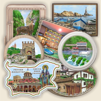 Магнитните сувенири изработваме с изображения от Градове и Туристически обекти, Икони и Светци, Зодии и Скечове, Проекти и Фотоснимки на клиенти, и всякакви други, подходящи за Спомени и Реклама.