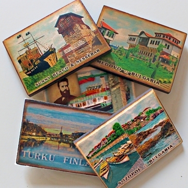 Магнитни сувенири 02-1 са 2-слойни с винтидж и травъл дизайни. Двете нива са лазерно изрязани дървесни плоскости, стабилно слепени едно над друго. Площта им е около 37-38 кв.см.