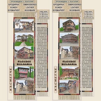Изделия от изкуствена кожа /Книгоразделители, Подложки, Българийки и др./ с битова бродерия и забележителности. Визуализации за Пловдив поискайте на мейл: artex@abv.bg