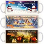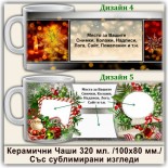 Предлагаме изработка на персонализирани Керамични Чаши с Коледни дизайни и ВАШИ СНИМКИ, с добавка на лого, надписи, наименования, сайт и всичко, което пожелаете. Изберете дизайн и изпратете снимки и надписи, които искате да брандираме. Чашите са практични /използваеми/ сувенири, подходящи за подаръци. Цената им е по 5 лв. за брой, при поръчка на 36 броя; 6 лв. - при 24 броя и 7 лв. - при 12 бр. Разработката и предварителната визуализация на Вашият персонален дизайн са безплатни при покупка.