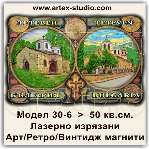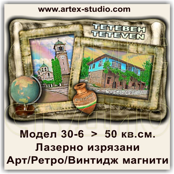 Сувенири и Магнити с Акварелни рисунки или Ретро Винтидж изгледи и форми. Визуализации за Тетевен, поискайте на мейл: artex@abv.bg