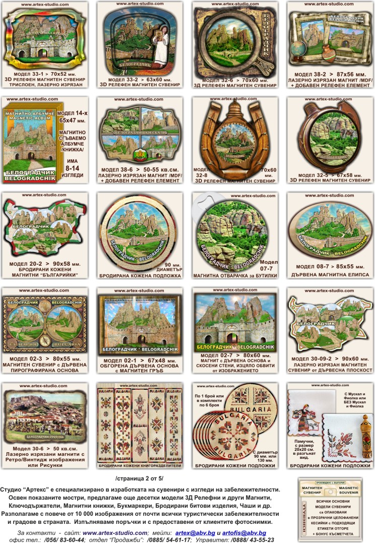 * Картите за отстъпки важат при покупки на сувенири в стандартен или сериен вариант, с налични в Студио "Артекс" изгледи и колажи - над 10 000 дизайна от почти всички дестинации в България ...