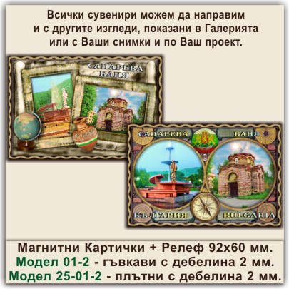 Сапарева баня: Визуализации на сувенири. Показаните мостри са примерни и могат да бъдат изработени и с други изгледи.
