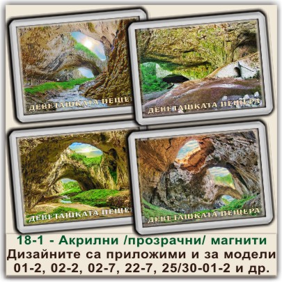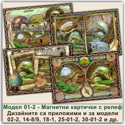 Деветашка пещера: Визуализации на сувенири. Показаните мостри са примерни и могат да бъдат изработени и с други изгледи.