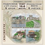 Комплект 6 броя подложки /с разнообразни изгледи/ от бирен картон с размер 94:94 мм., заоблени ъгли и дебелина 1,5 мм. Каширани с пълноцветни изображения /колажи/ на забележителности от цялата страна. Лицата са гланцирани с UV лак, което повишава трайността им и продължителността на използване.