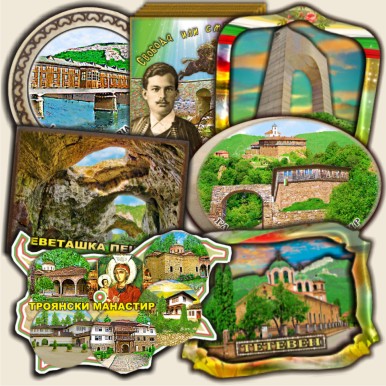 Сувенири с изгледи на забележителности от Ловеч, Троян, Тетевен, Гложенски и Троянски манастир, пещера Съева дупка, Природонаучен музей Черни Осъм, Состра и други градове и туристически обекти в Ловешка област.