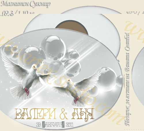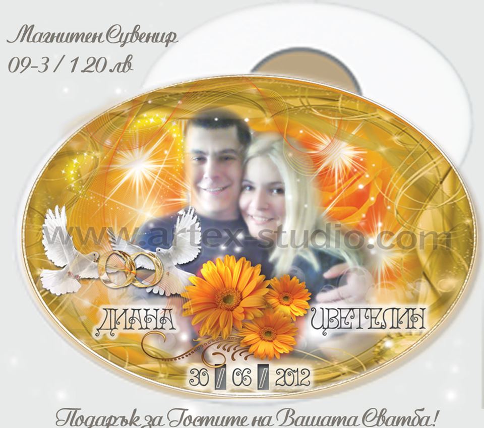 Изпратете ни Ваши снимки и идеи за дизайна, другото оставете на нас . . . На всеки от предлаганите модели сувенири можем да поставим снимки на младоженците, графични символи, поздравителен текст, дата на събитието или каквото Вие пожелаете . . .