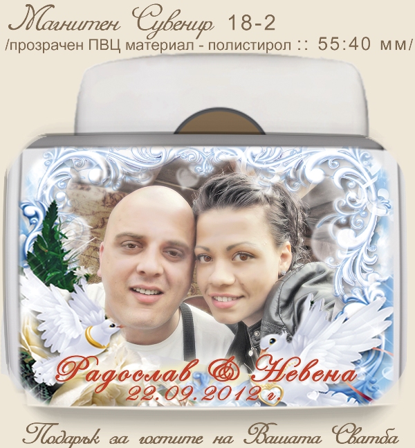 Изпратете ни Ваши снимки и идеи за дизайна, другото оставете на нас . . . На всеки от предлаганите модели сувенири можем да поставим снимки на младоженците, графични символи, поздравителен текст, дата на събитието или каквото Вие пожелаете . . .