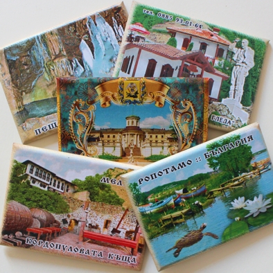 Основите на магнитни сувенири 02-7 са пресовани дървесни плоскости /фазер, МДФ/ с размер 80х60 мм. Стените са фрезовани, приятно заоблени и придават обемност на изделията. Изображенията обгръщат изцяло изделията и имат възможност за надпис на гърба, по желание на клиентите.