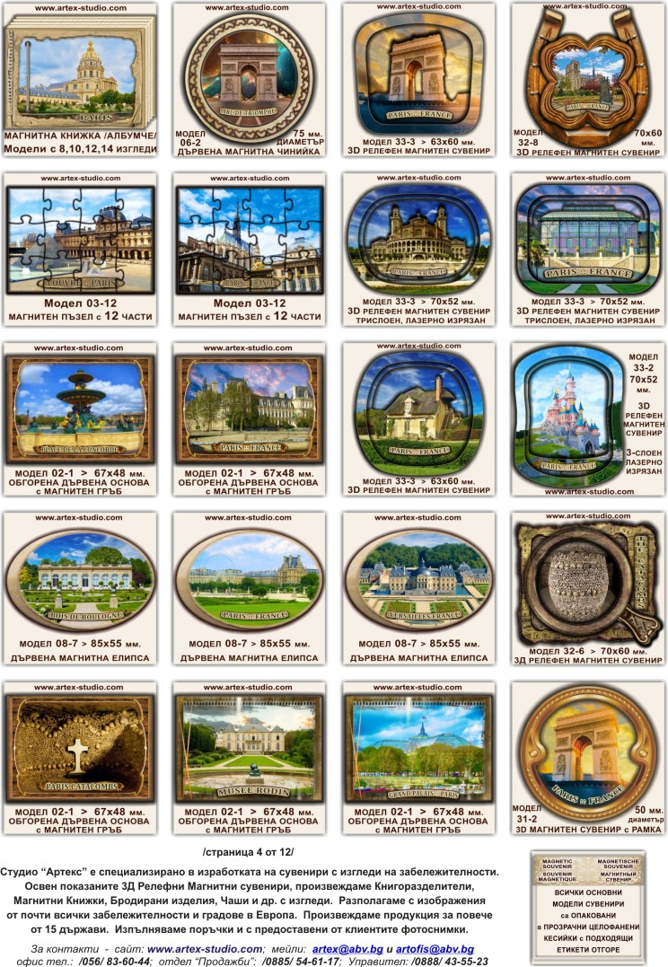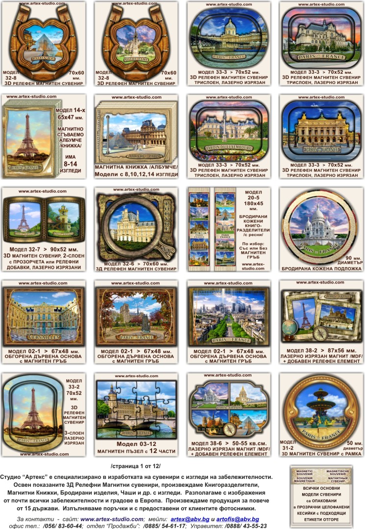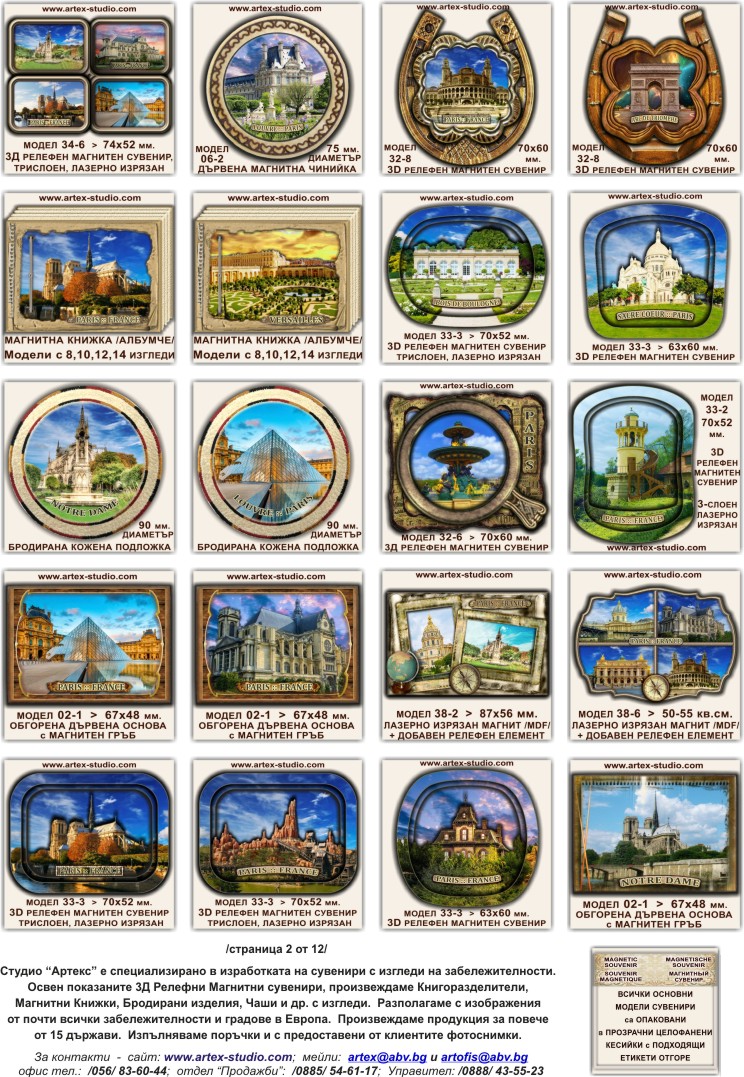 * Картите за отстъпки важат при покупки на сувенири в стандартен или сериен вариант, с налични в Студио "Артекс" изгледи и колажи - над 10 000 дизайна от почти всички дестинации в България ...