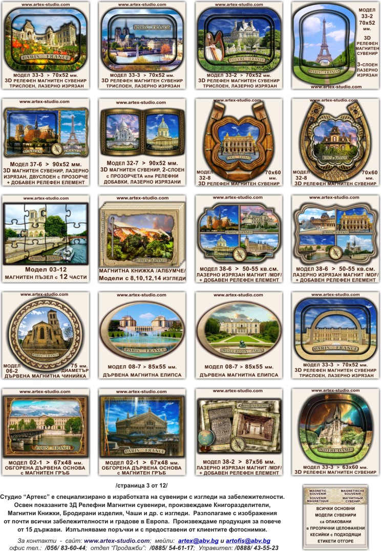 3. ФРАНЧАЙЗ с Комплексно зареждане на разнообразни хитови модели сувенири; 60% отстъпка от цените на дребно; Осигуряваме стелажи и безплатна доставка до Вашия обект; Всички изображения са със желаните от Вас забележителности; Имате право да заменяте залежали изделия. Минималното зареждане е за 1000 лв., като срещу тях ще получите стока за 2500 лв.